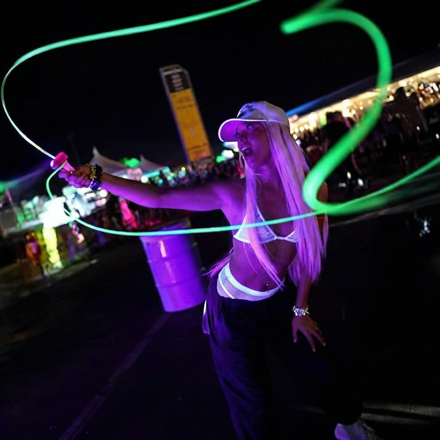 Flashing neon trails twist, loop, and dance — transforming ordinary spaces into immersive worlds of imagination.